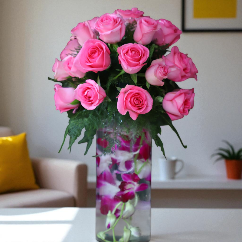 Sweet Blush Combo – Pink Roses with Black Forest Cake