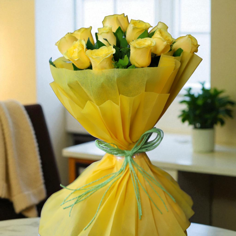 Golden Delight – 10 Yellow Roses & Celebration Box Combo