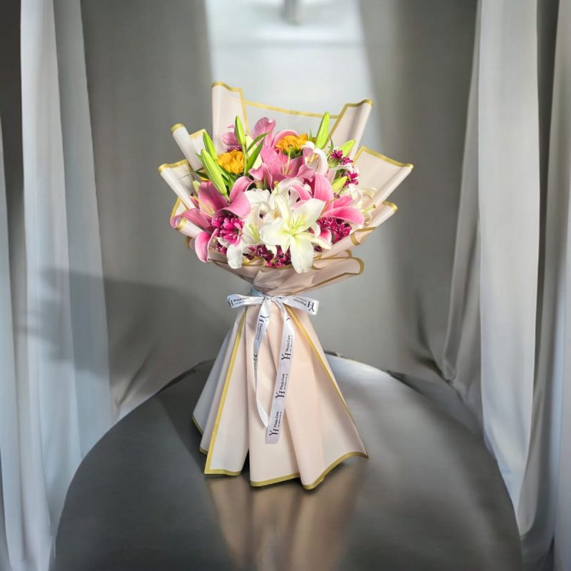 Very fresh flowers, Perfectly made Bookeh and quickly delivered. Thanks a lot for the printed note. Highly Recommended.