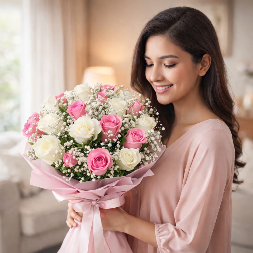 The Soft Romance Rose Bouquet suits many occasions. It is ideal for anniversaries, birthdays, romantic gestures, proposals, or simply to show appreciation and care. Pink roses represent admiration and sweetness, while white roses symbolize purity and sincerity. Together, they create a balanced and emotional floral expression that speaks without words. Whether gifted to a loved one or chosen for personal décor, this bouquet leaves a lasting impression.